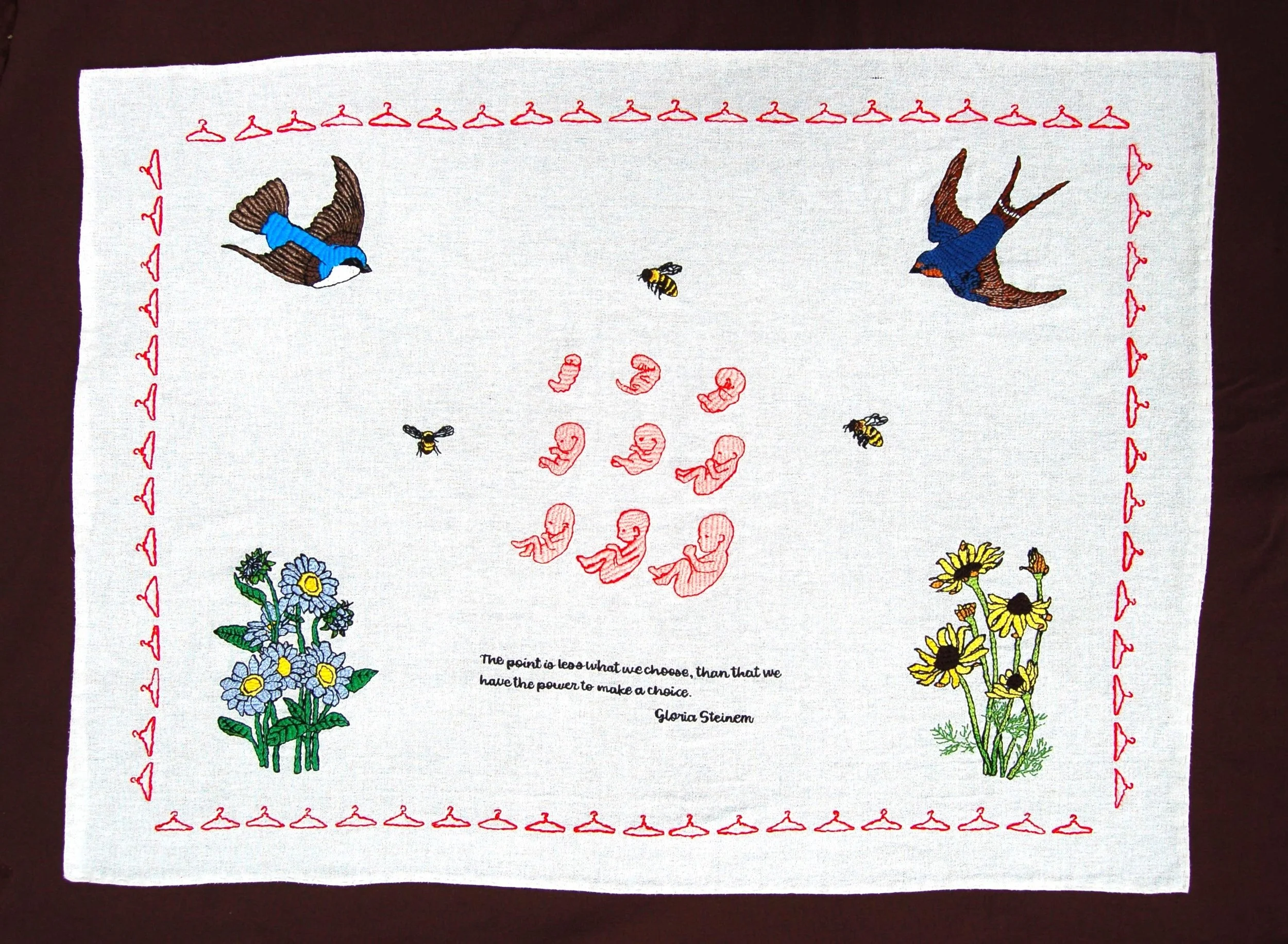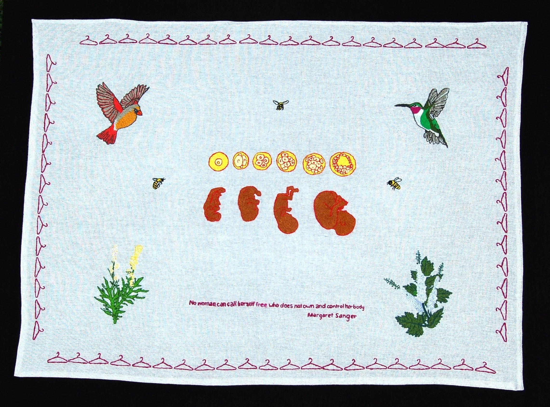 Title: My Body, My Choice #1, Materials: Embroidery Floss on Linen, Size: 31” x 41”